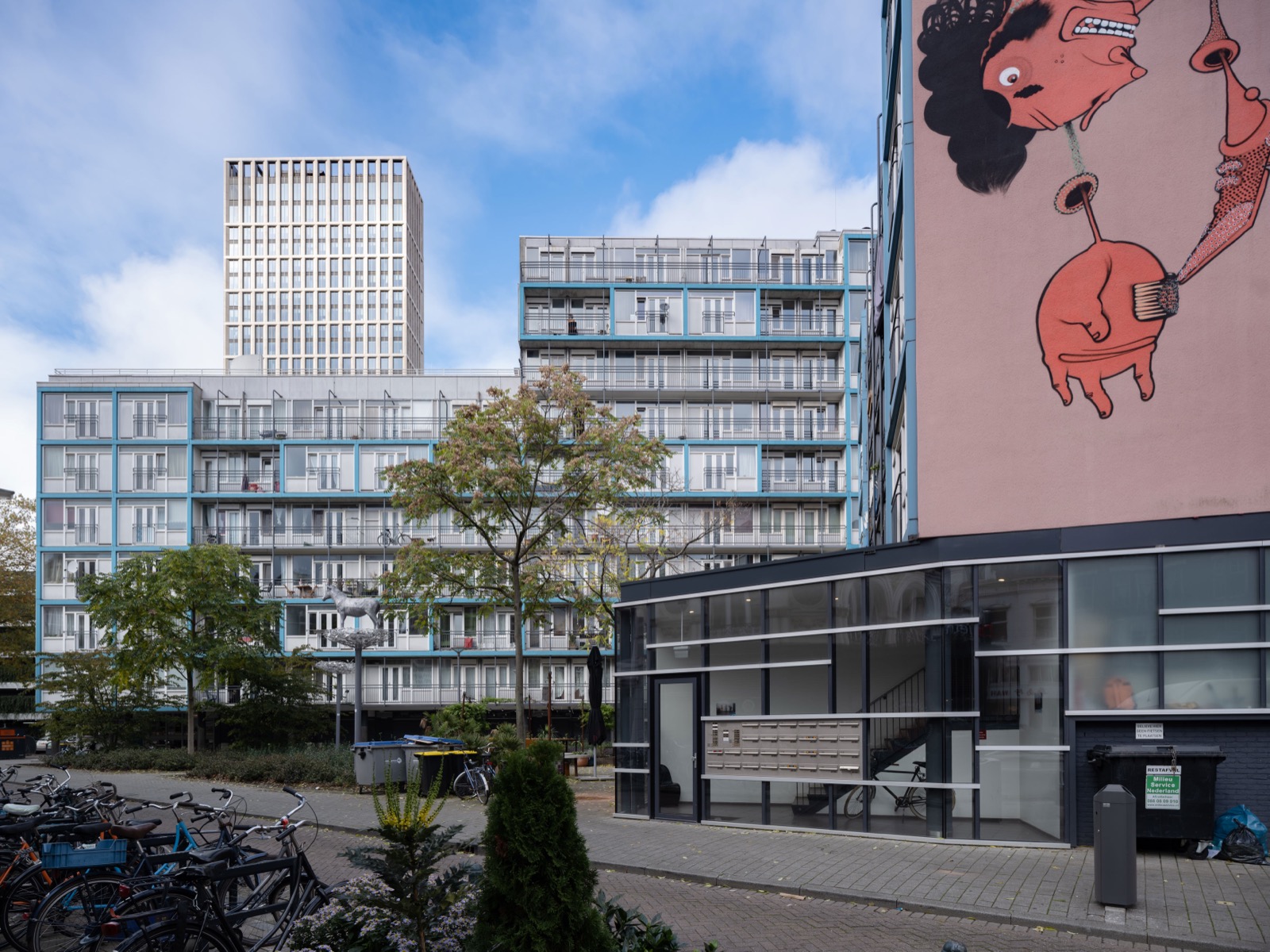 Architecten als Mecanoo, DKV en Girod & Groeneveld zorgden midden jaren tachtig voor een vernieuwing van de stadsvernieuwing. Met modern materiaalgebruik en abstracte vormgeving weken ze af van de standaard architectuur met zijn karakteristieke erkertjes, balkonnetjes en dakjes. Ook dit project is optimistisch en vernieuwend door het gebruik van glazen bakstenen, afwijkend roze gekleurd stucwerk, metalen hekwerk en een zichtbare betonconstructie.