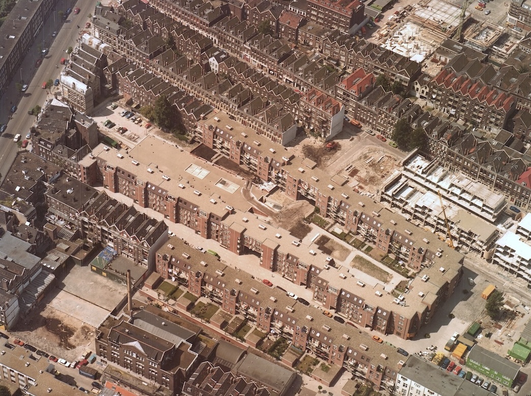 Door de oorspronkelijke straat hier weg te halen en twee bouwblokken te slopen, ontstond ruimte voor één bouwblok met een royaal binnenterrein. Het complex bestaat uit 184 woningen en een parkeergarage met 95 plaatsen, maar met kleinschalige architectuur. Het ontwerp spitste zich toe op de plattegronden. De gevels en materialisering kwamen op de tweede plaats. Van Wijngaarden: “In het begin van de stadsvernieuwing hadden we niet zoveel tijd om op schoonheid te letten.”